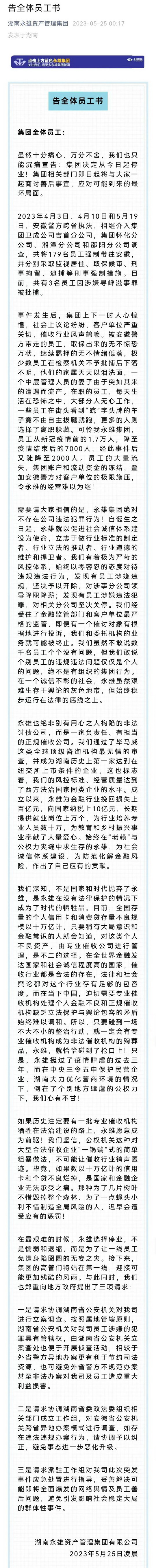 在这份告全体员工书中,永雄集团声泪俱下的描述几个关键点: