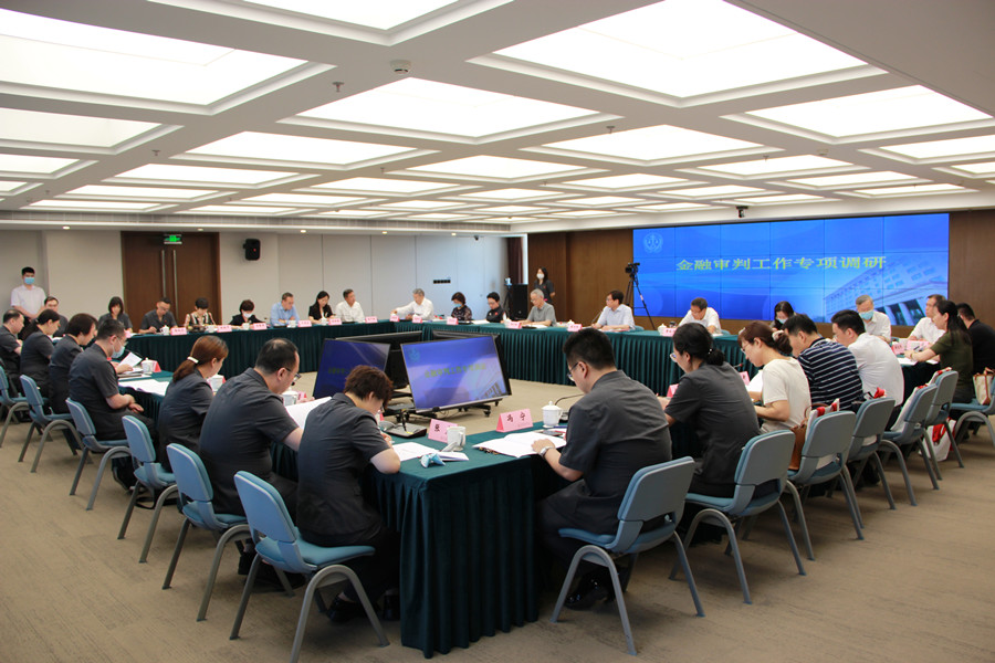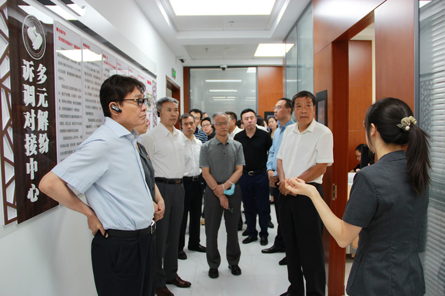 调研组参观了西城法院多元解纷诉调对接中心,了解涉信用卡案件、金融借款案件异时异地网络调解模式,金融案件多元解纷一体化平台运行等情况。座谈会上,东城、西城、石景山法院分别就金融审判多元化解及专业化机制建设等工作情况作了汇报。